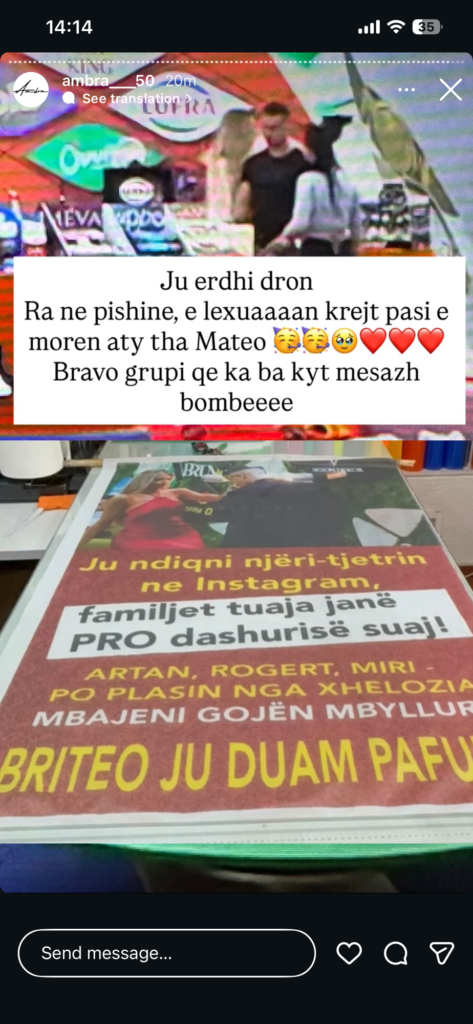 Mesazhi duket se ishte një mbështetje e drejtpërdrejtë për çiftin, duke treguar se jashtë shtëpisë ata kanë përkrahjen e familjarëve.