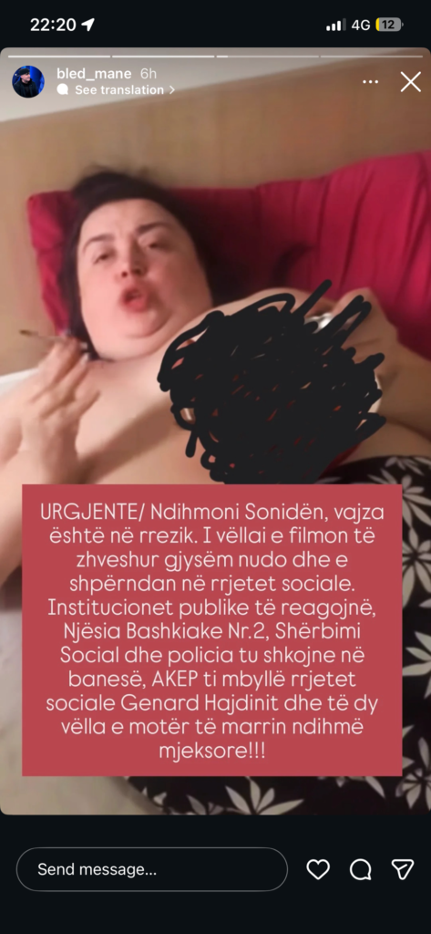 Një video tronditëse po qarkullon në rrjetet sociale ku Genardi shfaq motrën e tij gjysmë të zhveshur, duke shkaktuar indinjatë të fortë publike dhe shqetësim për gjendjen e saj shëndetësore.
