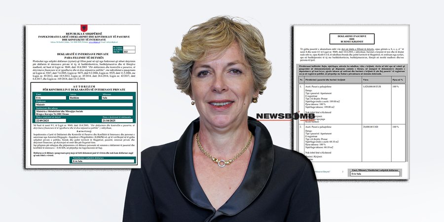 Nga një hulumtim i shpejtë, Ministrja e Shëndetësisë dhe Mbrojtjes Sociale, Evis Sala, rezulton të zotërojë asete me vlerë rreth 5.6 milionë euro, referuar deklarimit të pasurisë që është publik, si edhe të dhënave të publikuara në “Open Spending Data”.