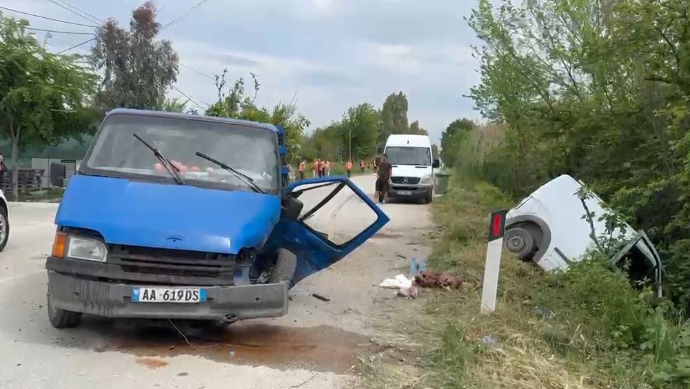 Sipas informacioneve paraprake, njëri prej mjeteve ka dalë nga rruga dhe ka përfunduar në një kanal me ujë, ndërsa automjeti tjetër, i ngarkuar me fidanë pemësh, ka pësuar dëmtime të shumta në pjesën e përparme.