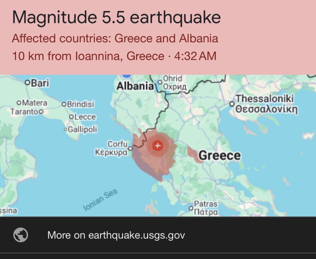 Një tërmet me magnitudë 5.4 ballë të shkallës Rihter ka goditur Greqinë në orët e para të mëngjesit, duke shkaktuar lëkundje që janë ndjerë edhe në disa zona të Shqipërisë.