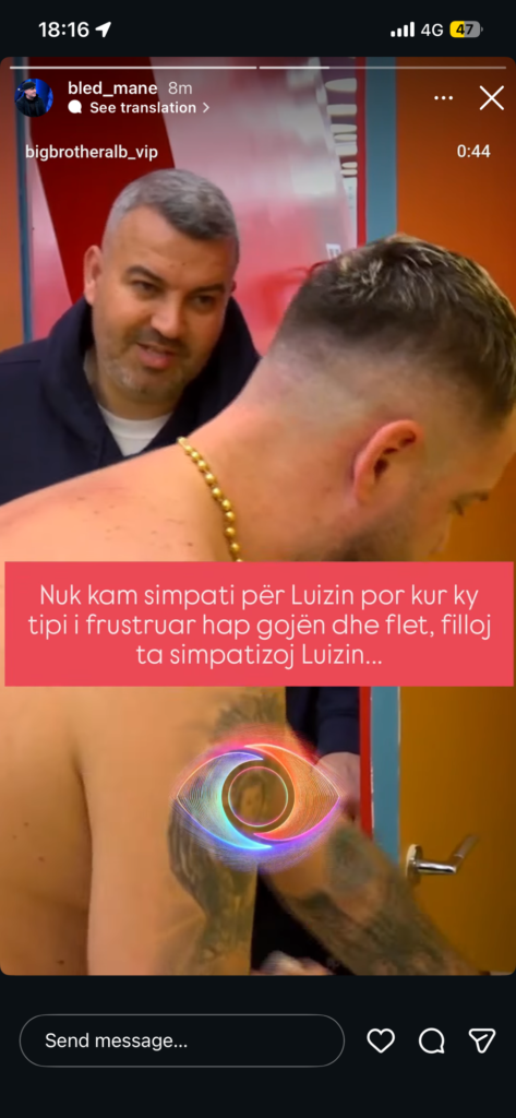 “Nuk e kam qejf Luizin, por sa herë flet ky tipi (Rogerti), më bën që ta simpatizoj Luizin,” u shpreh Mane, duke ndezur reagime dhe debate mes fansave të BB VIP