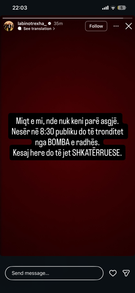 “Miqtë e mi, ende nuk keni parë asgjë. Nesër në 8:30 publiku do të tronditet nga BOMBA e radhës. Kësaj here do të jetë SHKATËRRUESE.”