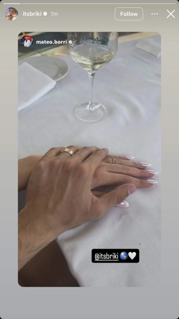 Së fundmi, dyshja ka hequr çdo hije dyshimi për fansat. Mateo ka ndarë në rrjetet sociale një fotografi mjaft të ëmbël ku shfaqet duke i mbajtur dorën Brikenës. Por sytë e të gjithëve mbetën tek një detaj i veçantë: në gishtat e tyre shkëlqejnë ende unazat që shkëmbyen gjatë “dasmës” brenda shtëpisë!