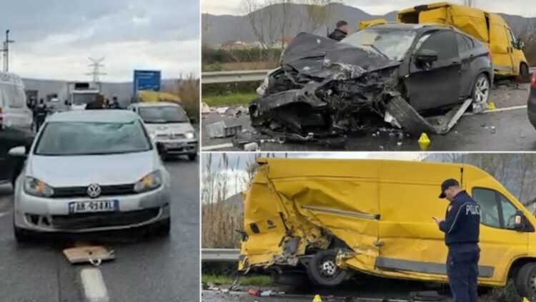 Tre automjete, mes të cilave edhe një furgon mallrash, janë përplasur me njëra-tjetrën, duke shkaktuar plagosjen e tre personave.