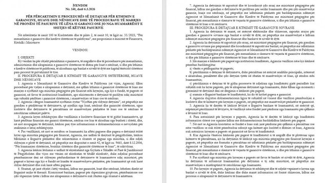Edi Rama ka nënshkruar Vendimin nr. 140, datë 6 mars 2026, një akt që rregullon procedurat për rikuperimin e garancive shtetërore, huave dhe nënhuave të pakthyera, si dhe marrjen në pronësi dhe shitjen e pasurive të debitorëve nga shteti.