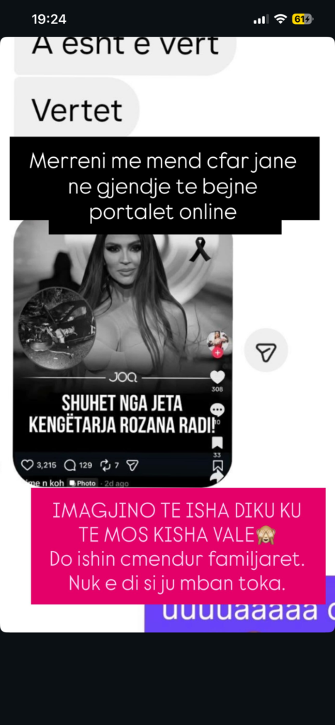 Personazhet e njohur herë pas here përballen me lajme të rreme që shkruhen për ta. Ditën e sotme një media shqiptare ka publikuar një lajm për këngëtaren e njohur, Rozana Radi.