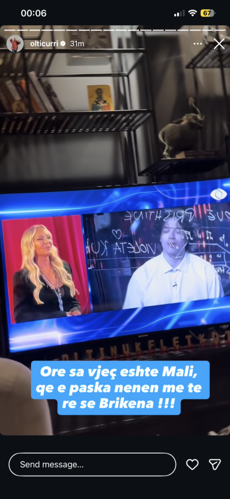 Një moment nga Big Brother VIP ka bërë xhiron e rrjetit dhe po komentohet shumë në rrjetet sociale. Në një “story” të publikuar në Instagram, shihet një pjesë nga emisioni ku në ekran shfaqet Mali së bashku me nënën e tij, këngëtaren Violeta Kukaj.
