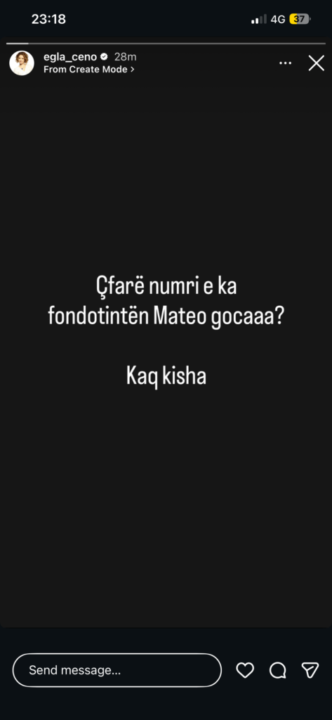 Përmes një postimi në rrjete sociale, Egla ka hedhur një “kunj” të drejtpërdrejtë ndaj Mateos, duke shkruar:
