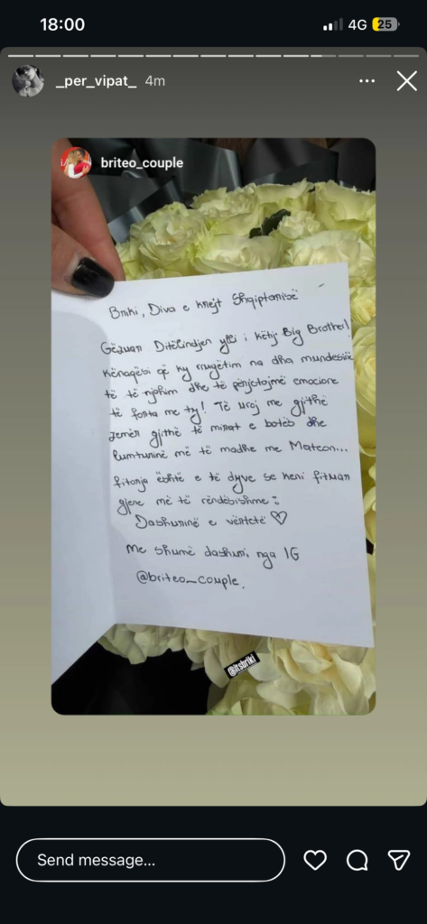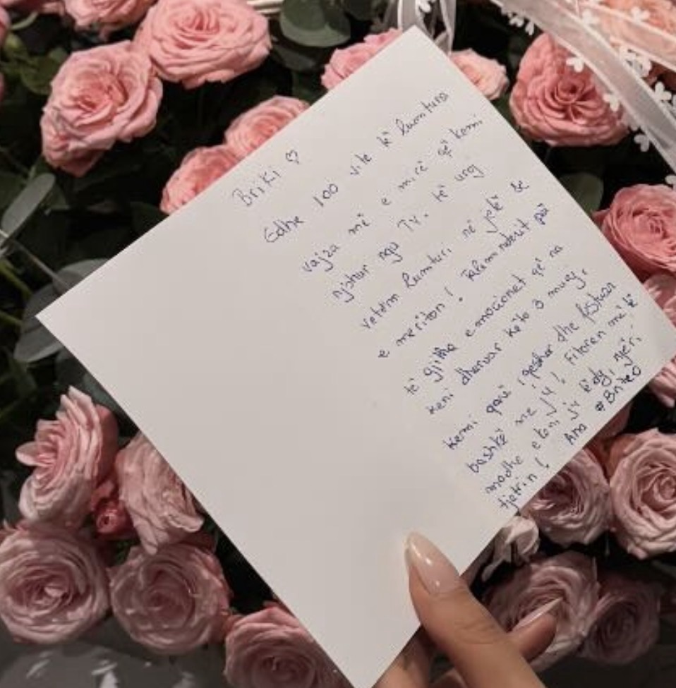 Ish-banorja ka ndarë një moment shumë emocional, ku shfaqet duke marrë një dhuratë të veçantë nga fansat e saj: një buqetë e madhe me trëndafila dhe një letër e shkruar me dorë, e mbushur me fjalë zemre.