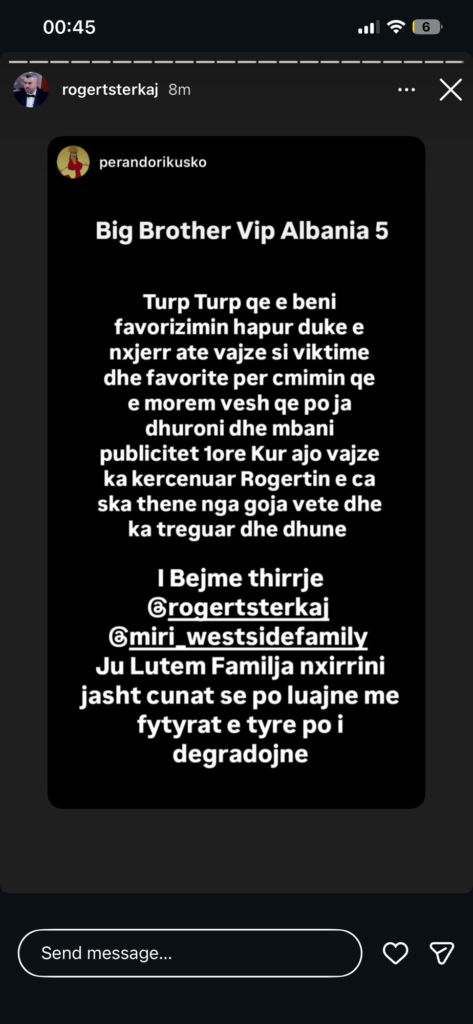 Tensioni rreth Big Brother VIP Albania 5 po rritet çdo ditë e më shumë, dhe këtë herë reagimi nuk vjen vetëm nga publiku, por nga vetë familjarët e Rogertit.