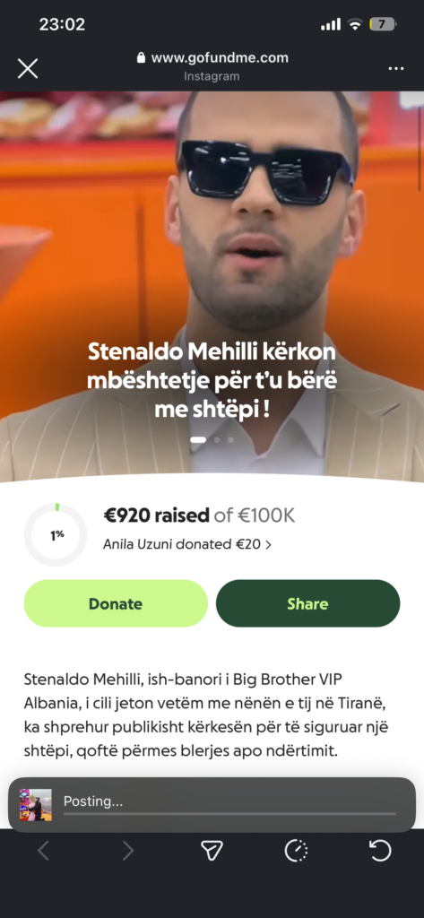 Pelushi ka hapur një fushatë në platformën “GoFundMe”, duke u bërë thirrje të gjithë shqiptarëve brenda dhe jashtë vendit që të kontribuojnë për një kauzë të rëndësishme: sigurimin e një shtëpie për Stenaldon.