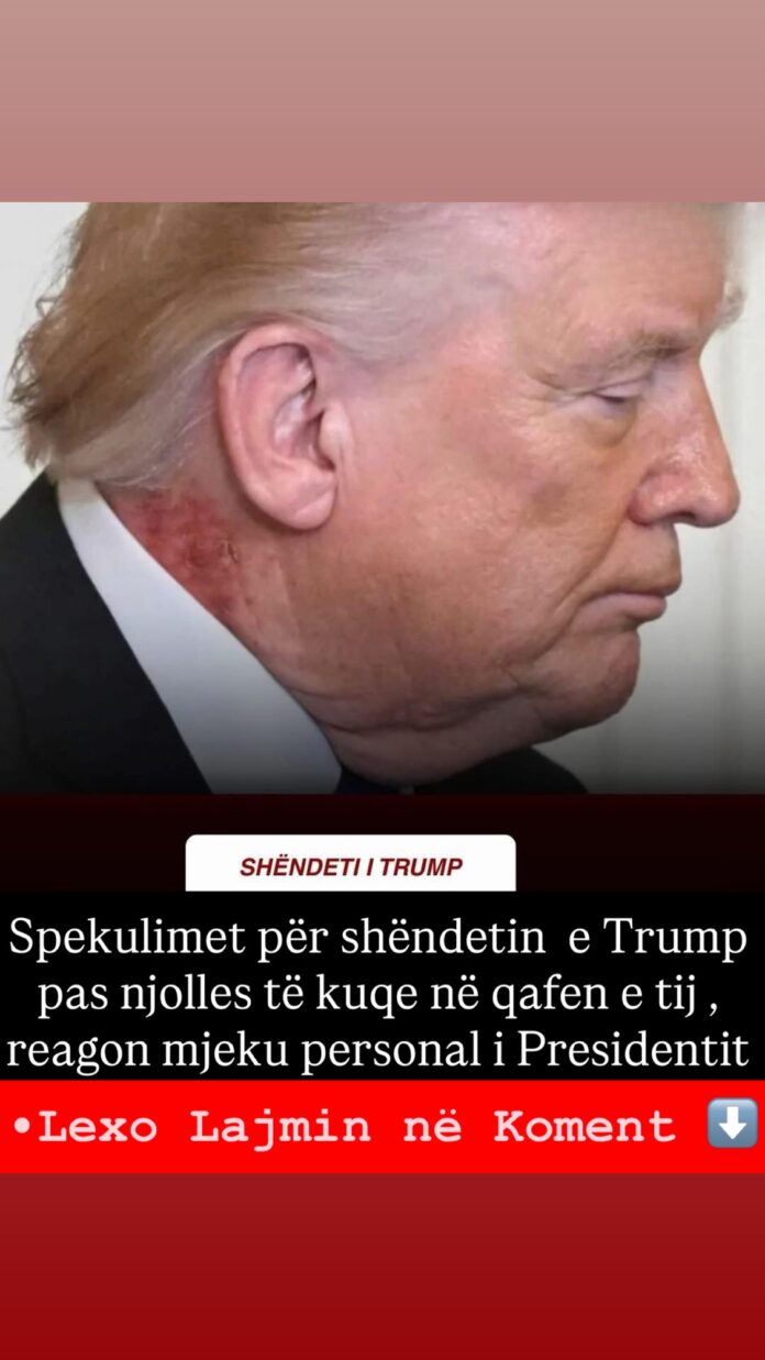 Sean Barbabella, mjeku personal i Trump, tha se presidenti po përdor një krem të zakonshëm për të trajtuar njollën nën veshin e djathtë. Ai shtoi se trajtimi ka nisur para një jave dhe se skuqja mund të zgjasë disa javë.